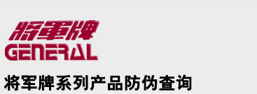 2010年10月開始我公司設立將軍牌系列產品防偽查詢中心,可以查詢2010年10月以后生產的將軍牌系列產品,具體防偽查詢詳細說明如下: